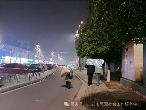 为切实保障流浪乞讨人员在极端寒冷天气下的基本生存权益,在广安市救助管理站的统筹指导与大力支持下,广安市思源社会工作服务中心于2026年1月12日至1月18日继续持续推进开展“暖城守望:街面流浪巡查救助”项目。针对冬腊月(农历十一月、十二月)寒潮来袭、气温骤降的实际情况,中心组织专业社工及志愿者队伍,在广安主城区范围内开展了系统性、高频次的街面巡查救助行动。