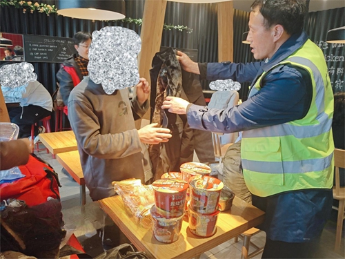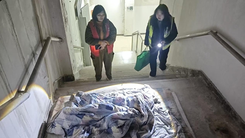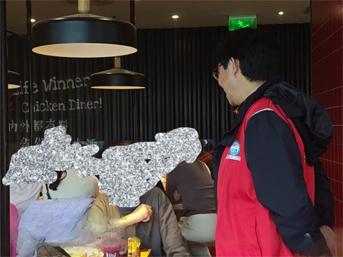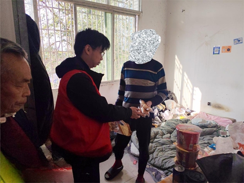 2月20日,执勤巡逻志愿者沿枣山街道文华·尚品城、广武路一路巡查至中铁废弃楼时,看望了一名在此居住的流浪人员。志愿者当即送上面包等食物,与其亲切交谈,细致叮嘱其注意身体、做好自我照顾,该流浪人员对志愿者的关怀帮助深表感谢。交流中,志愿者还从该人员处获取了流浪人员较易聚集的点位信息——摩尔春天肯德基二楼,为后续精准巡查提供了重要线索。
