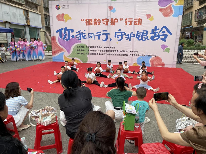 活动伊始,主持人介绍了本次活动的目的和意义,强调了阿尔茨海默病预防的重要性,并表达了对参与活动的各位嘉宾和社区居民的热烈欢迎。随后,来自广安市慈善会与义工联的社工们,通过海报展示和现场教授手指操的方式,旨在提升公众对阿尔茨海默病的认知及预防意识。居民们积极参与,跟随着社工的示范,认真完成每一个动作。金色摇篮潜能开发婴幼园和义工联舞蹈队的精彩表演将活动推向了高潮。小朋友们身着统一的服装,伴随着欢快的音乐,拿起篮球,跳起了充满活力的舞蹈。他们天真烂漫的笑容和认真的表演赢得了现场观众的阵阵掌声。紧接着,义工联舞蹈队的成员们也以精湛的舞技和默契的配合,展现了他们对生活的热爱和对健康的追求。他们的表演不仅丰富了活动的形式,更传递了积极向上的生活态度,鼓励大家要关注健康,积极预防阿尔茨海默病。在享受健康与快乐的同时,中国电信广安分公司唐经理详细讲解了电信诈骗的常见手段、特点和防范措施,提醒居民们要保持警惕,不轻易相信陌生人的电话和信息,不随意透露个人信息和银行账户密码。大家纷纷表示,要认真学习防范电信诈骗知识,提高自我保护能力,共同营造一个安全、和谐、健康的社区环境。活动中,广安区浓洄街道果丰社区的工作人员还发放了关于阿尔茨海默病预防的宣传资料,帮助居民们更好地了解该疾病的预防和治疗知识。