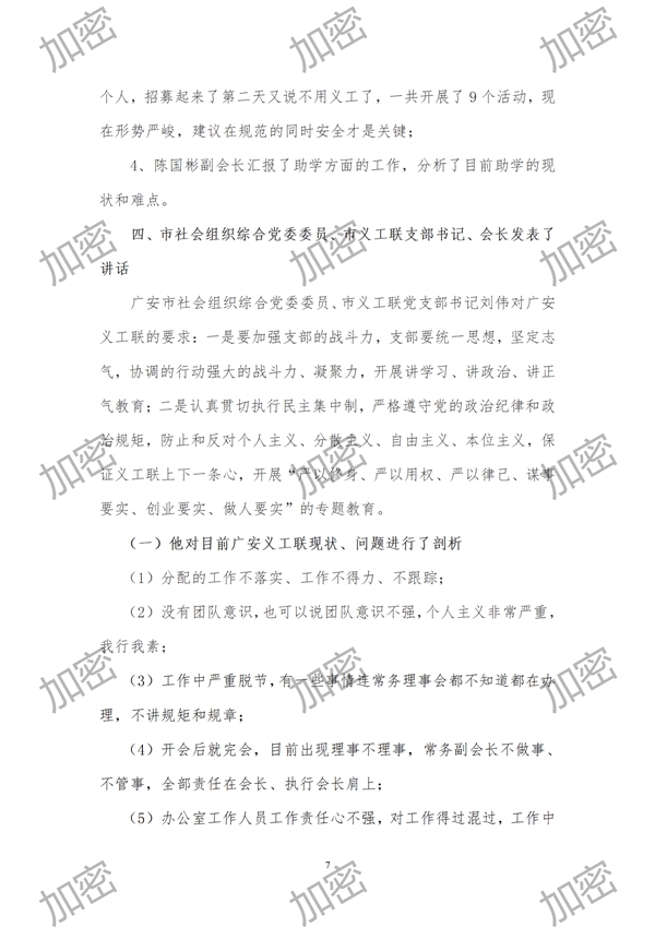 (一)他对目前广安义工联现状、问题进行了剖析